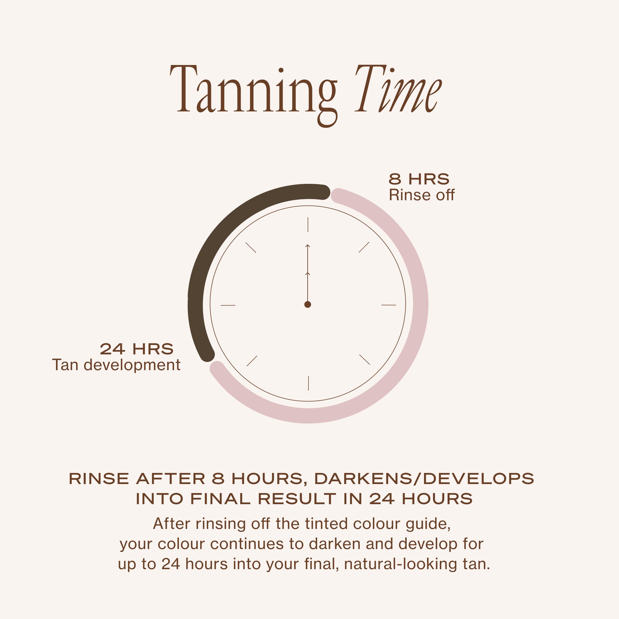 5. Rinse colour guide off after 8 hours. Your tan will continue to develop for up to 24 hours.