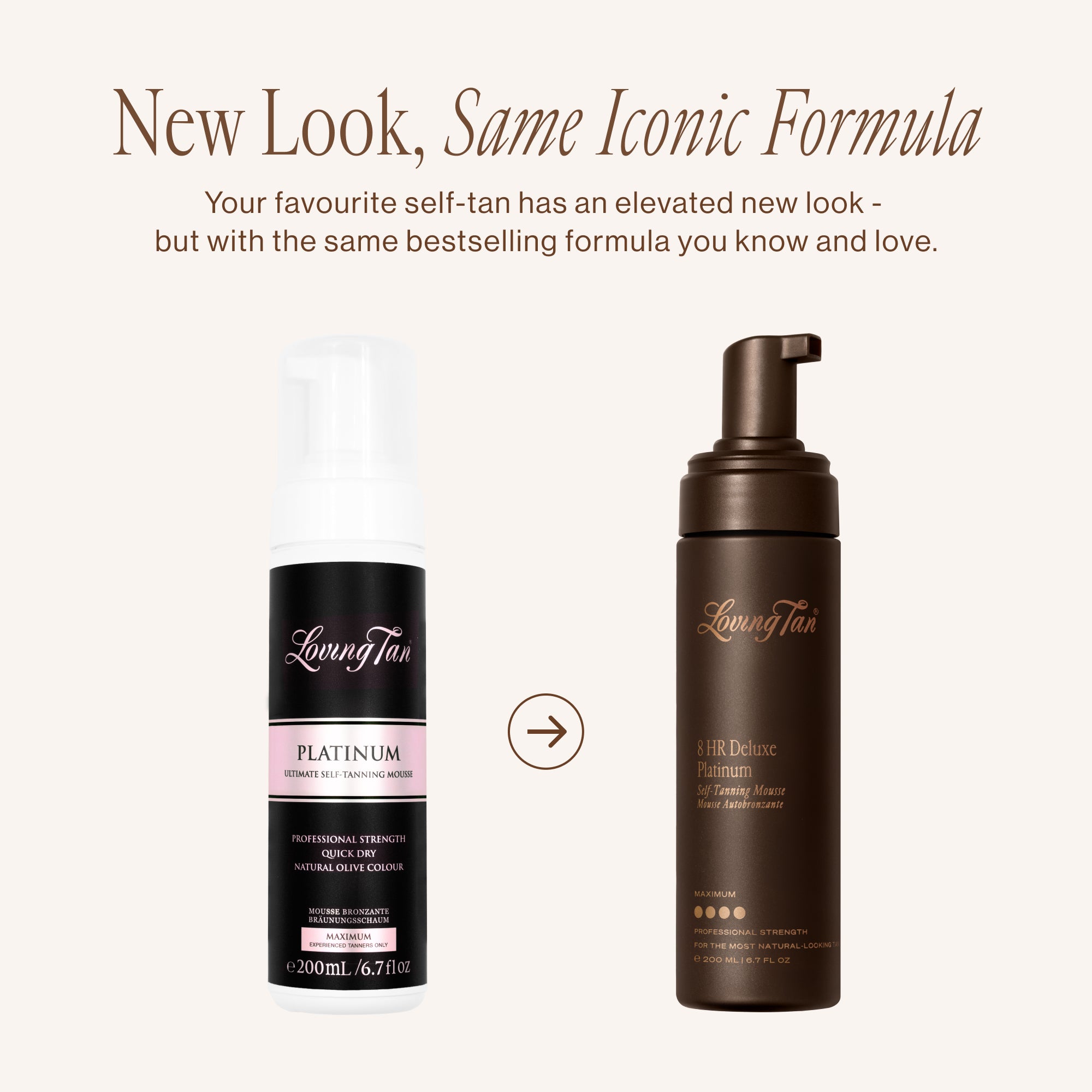 The only difference between Platinum and the other mousses in our Loving Tan range is the depth of colour. Platinum Mousse is formulated with a maximum concentration of active ingredients, giving you the deepest, darkest results after just one application.