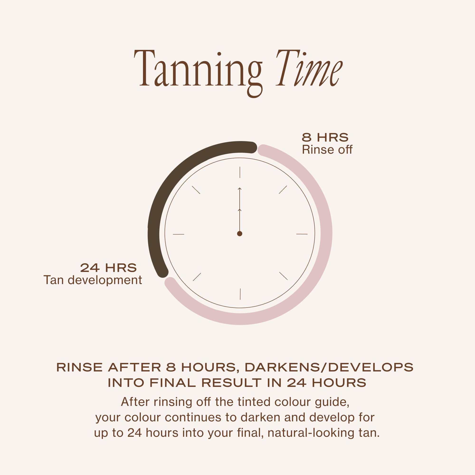 5. Rinse colour guide off after 8 hours. Your tan will continue to develop for up to 24 hours.